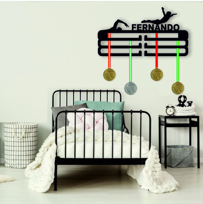 Colgador juvenil para medallas e insignias PERSONALIZADO, con el nombre que elijas.