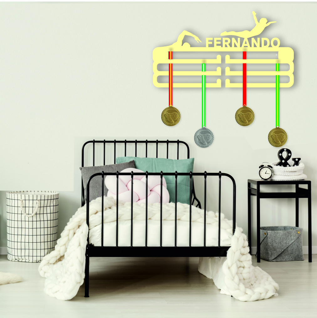 Colgador juvenil para medallas e insignias PERSONALIZADO, con el nombre que elijas.